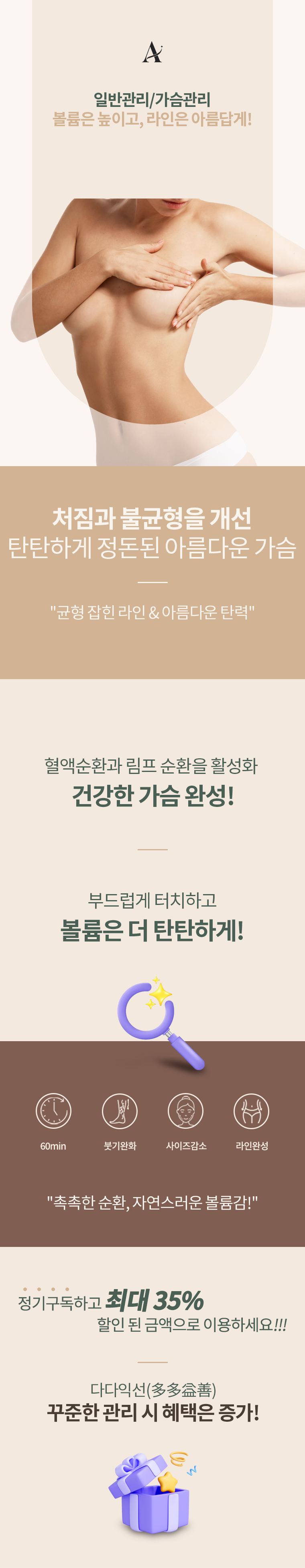 탄력과 아름다운 라인을 위한 가슴관리! 부드러운 마사지로 순환을 촉진하고 건강하고 탄력 있는 볼륨을 완성하세요!